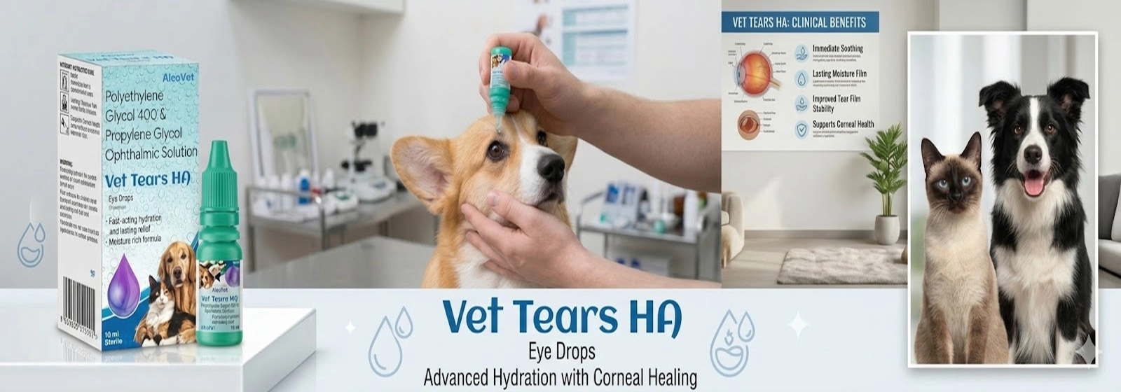 Vet Tears HA is part of AlcoVet's Eye Care portfolio. For post-operative antibiotic-steroid cover, see FurrMoxi LP.